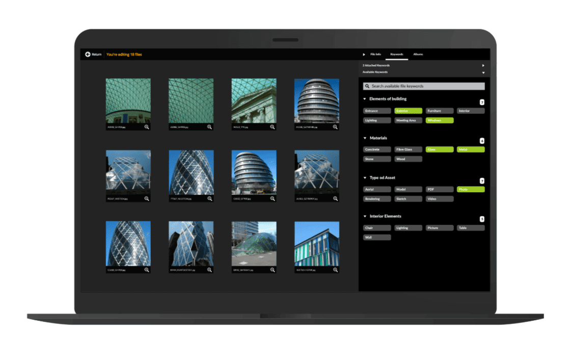 - Comprehensive metadata: Tag files with any custom field you want, from "Project Number" and "Material Type" to "Client" and "Usage Rights."