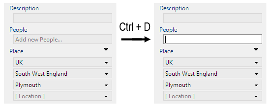 The “People” tag is displayed with an underline font in the new Daminion version. It means that if you press Ctrl + D key, the People tag will be selected in the Property Panel. To change the “active” tag, just click on the title of any other editable tag.