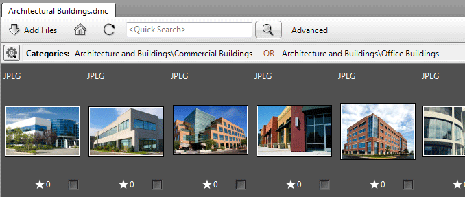 I can select the “Commercial Buildings” tag and press the Enter key (or double click on the tag). After that, I can select the “Office Buildings” tag and press the Enter key again. As a result, I will see all the office and commercial building photographs in my photo archives.