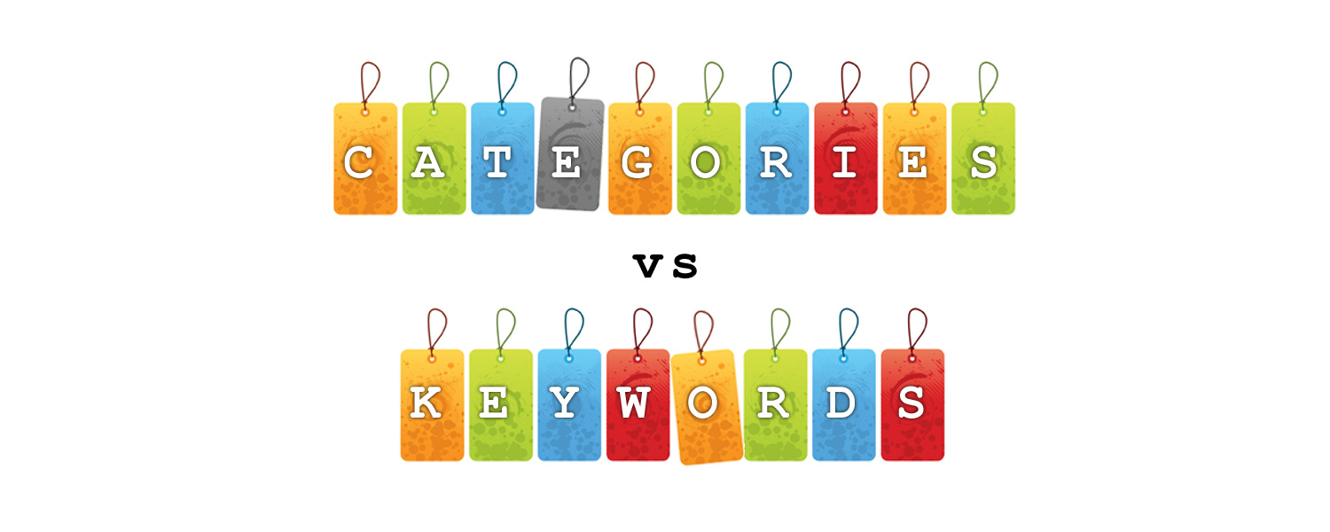 If our warehouse is that of a department store, categories are different departments. E.g. furniture, appliances, garden equipment, etc. Keywords describe individual products. E.g. double bunk children’s bed, two slice toaster, lawn fertilizer, et cetera.