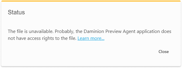 Make sure that the computer where the Preview Agent is installed has access to the files.