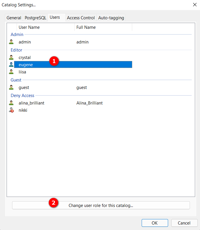 The Users tab options get available after the catalog is created. Please confirm the creation of the catalog, restart the Daminion server and open the catalog settings again to adjust the permissions of the users specifically for this catalog.