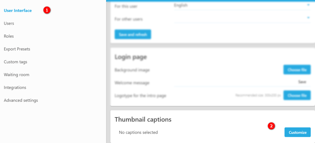 To customize thumbnail captions in the web client, log in as administrator, navigate to Settings > User Interface > Thumbnail Caption and click Customize.