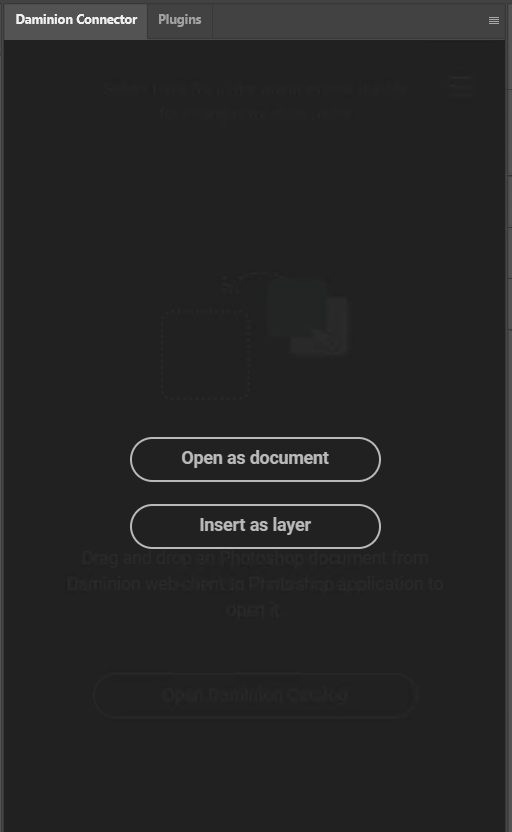 If one file is already opened in Photoshop and another file is dropped onto the Daminion Connector panel, you will be prompted to open it as a new document or insert it as a layer of the opened file.