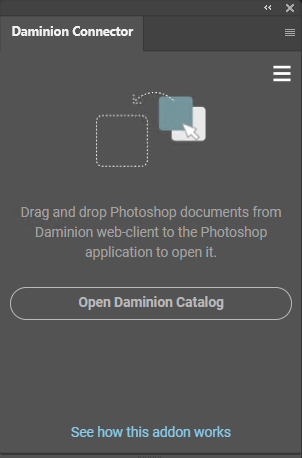 Daminion Connector is not supported in Photoshop versions released before 2021. As of version 2025 an HTTPS connection is required to access the web catalog.