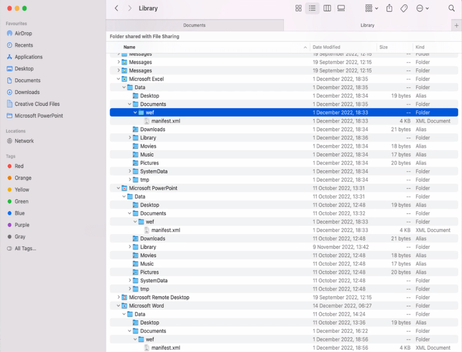 /Users/<username>/Library/Containers/Microsoft Word/Data/Documents/wef
