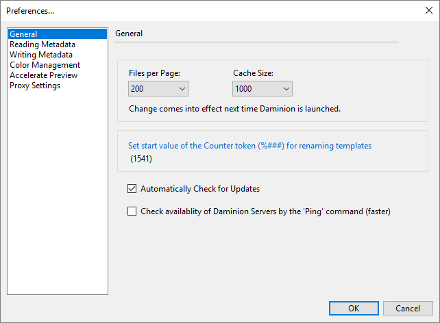 You can find the dialog for changing the Daminion settings in the program menu under the “Edit” > “Preferences ...” menu.