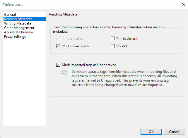 By default, Daminion uses the “|” character to separate Tag hierarchies.