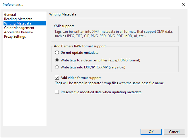- Write Tags to Sidecar .xmp files (except DNG format)