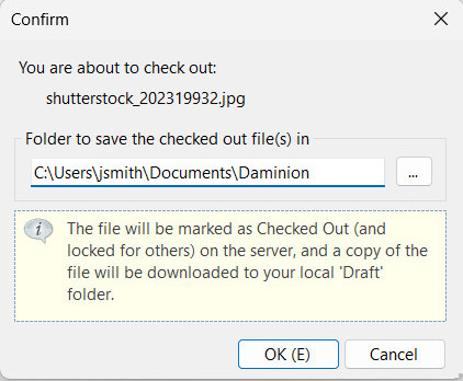 To monitor a user’s file processing, a file must be ‘checked out‘ in Daminion. Daminion then marks the file accordingly and locks it for other users. Furthermore, a copy of the file is stored in a local folder on the user’s computer.