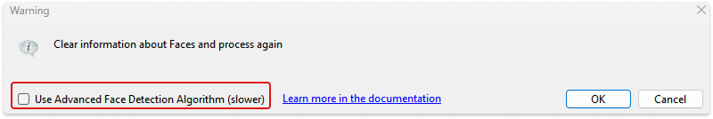 Starting with version 10.5, an improved recognition process is available. Check the box if you want the image to be processed with increased resolution, which allows small faces (less than 80×80 pixels) to be recognized.