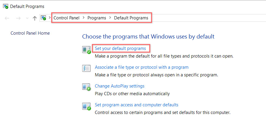 Set Default Programs panel
