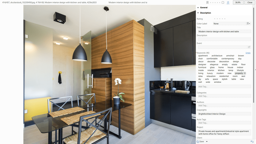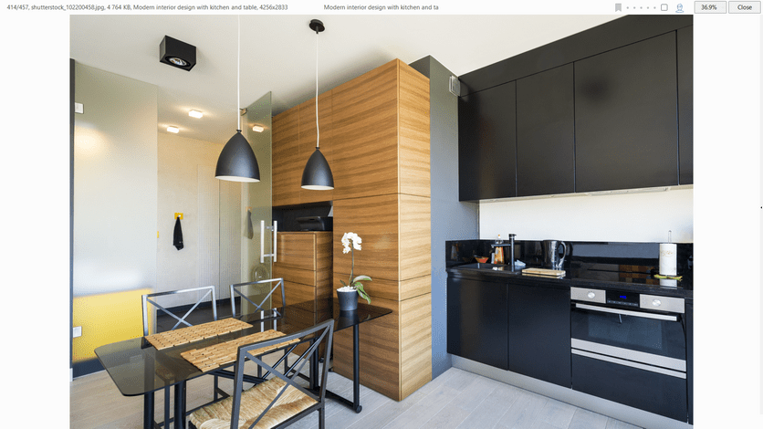 Daminion’s full-screen mode allows you to use your entire PC screen to view and rate images. This is a real-time display; in other words, it instantly displays the original file on the screen. If the original file is temporarily unavailable, Daminion enlarges the thumbnail and displays it at a lower resolution with the following message at the bottom of the screen: “The file [file name] is offline or missing”.