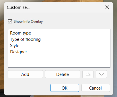 In the Customize dialog box, select or deselect the tags to be shown above the image in full-screen mode.