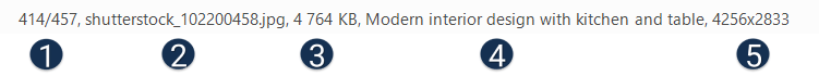 414/457 is sequence number within specified search criteria. This number varies from one search criteria to another, e.g. within the Event tag the given image can be 56/72;