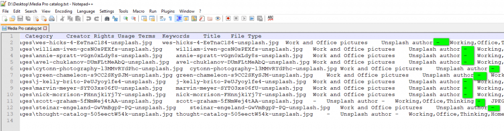 Important: If a particular file does not contain a specific tag, Media Pro exports this tag as a dash “-“. All the tags are tab-separated in the resulted *.txt file. You need to remove all these dashes from the *.txt file prior to importing it into Daminion. Otherwise, Daminion will retrieve all these dashes and display them in the database. Tab-separated *.txt file