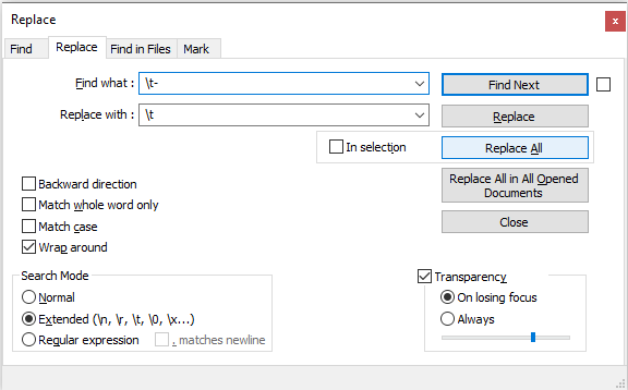 Please be very careful with replacing the dashes as the dashes can be a part of the file name or another tag. Please use the command “\t-” to locate all tabs with dashes and replace them with “\t”(tab only). We recommend trying this with a small *.txt file first. Removing unnecessary dashes from the *.txt file.