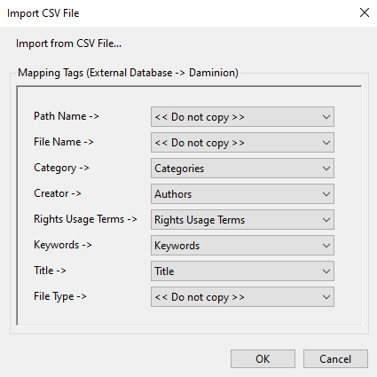 In the next window, set the tag mapping rules. Path Name, File Name, and File Type can be left empty because these fields will be automatically recognized and imported by Daminion.