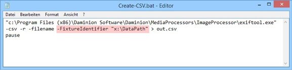 In our example, we chose the “Fixture Identifier” field. Please note that in the batch file these names are not allowed to contain spaces, and they must begin with a hyphen. So the correct entry is: ” FixtureIdentifier”.