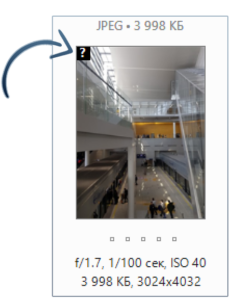 Original files that are missing from Daminion, because they have been deleted externally or moved to another location, are identified in the Daminion browser by a question mark icon in the top left corner of the file thumbnail.