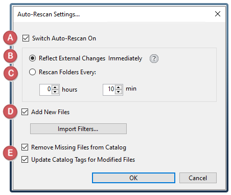In the file menu, click Catalog > Auto-Rescan Settings.