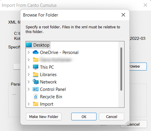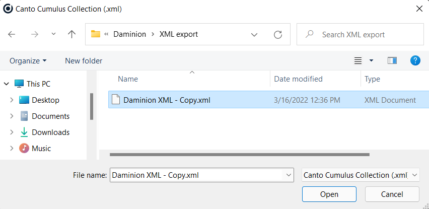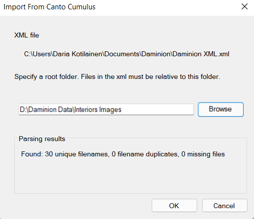 4 – Browse for the .XML file  exported from Canto Cumulus, select it and click “Open”