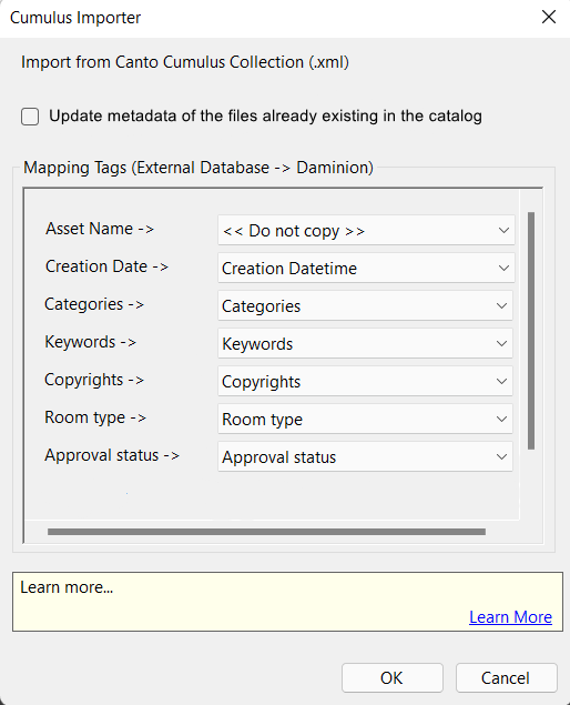 Home Documentation Importing How to Migrate Metadata from Canto Cumulus to Daminion