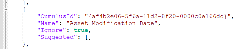 Change the parameter “Ignore”: true, to “Ignore”: false, to make a metadata field available for mapping.