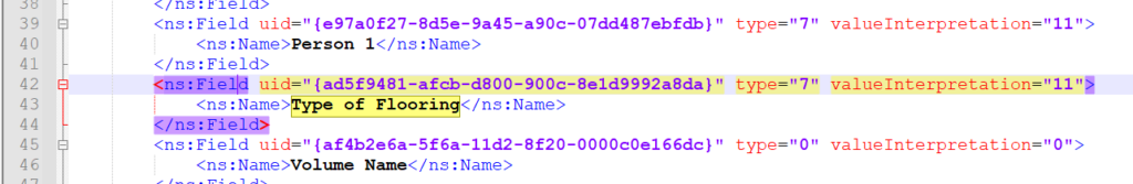 Open the .XML file, locate the custom tag that you want to import in Daminion. In our case, it is “Type of Flooring”