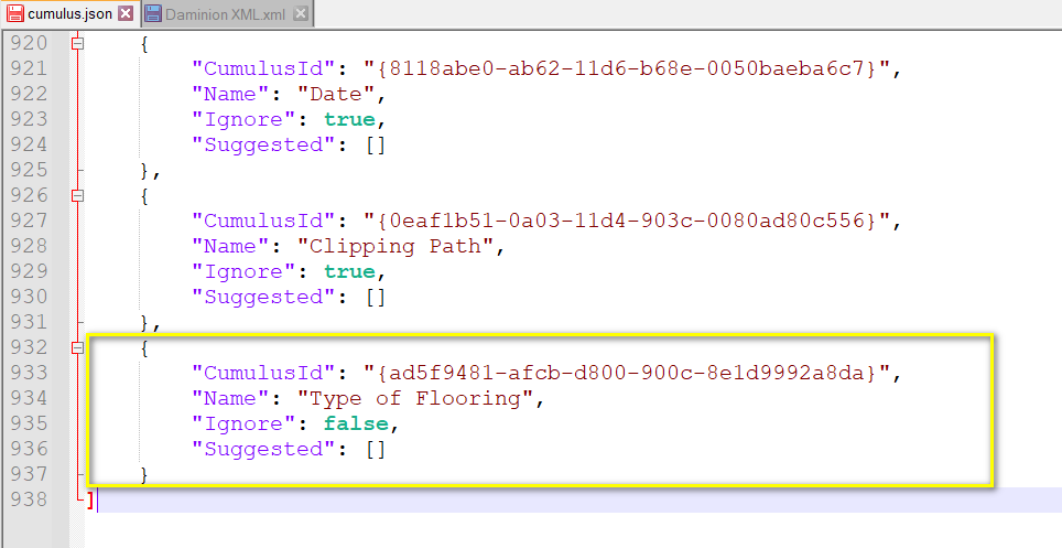 In this case, edit “cumulus.json” by adding the information about this tag from the .XML file exported from Canto Cumulus.