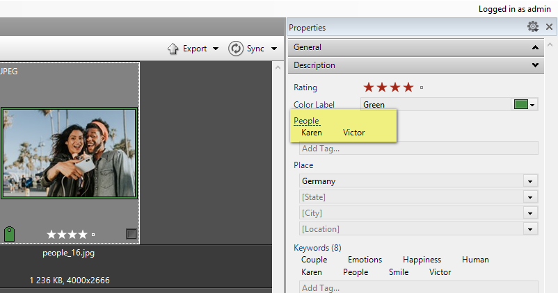 Daminion will display assigned People tags.
