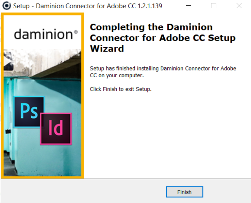 Once the installation is complete, the Daminion Connector plugin will be available in InDesign, Illustrator, Premier, and Photoshop.