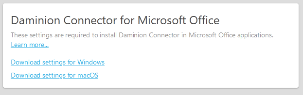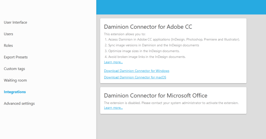 By default, Daminion Connector is disabled. Once activated via the Daminion Server Administration panel as described above, the download links for Windows and macOS will appear.