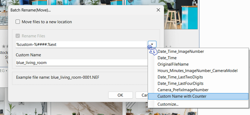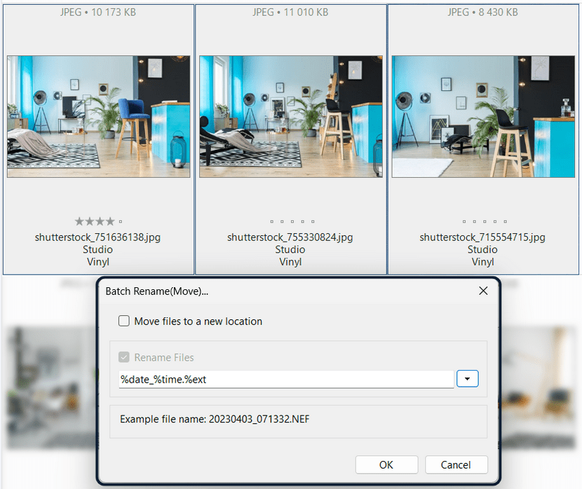 The first option, Move files to a new folder, allows you to specify a destination folder the selected files will be copied to after renaming. Leave this option unchecked if you want the renamed files to remain in their original location.