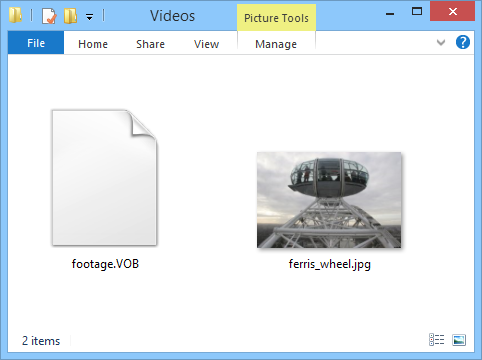 Let’s say you have a VOB video file, and you want Daminion to display it with your own thumbnail. First of all, select a jpeg image for Daminion to use as the thumbnail preview.