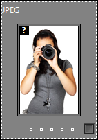 If the original files have been deleted, moved, or renamed outside Daminion, the thumbnail preview displays a small question mark in the upper-left corner.