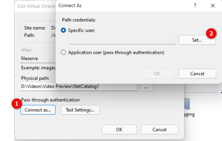 - Adjusting Virtual Directory “fileserve” and access permissions