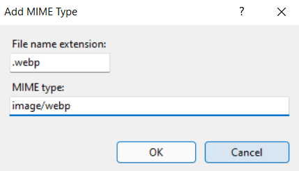 Locate the “.webp” MIME type. If is it not in the list, click on “Add” to add it manually.