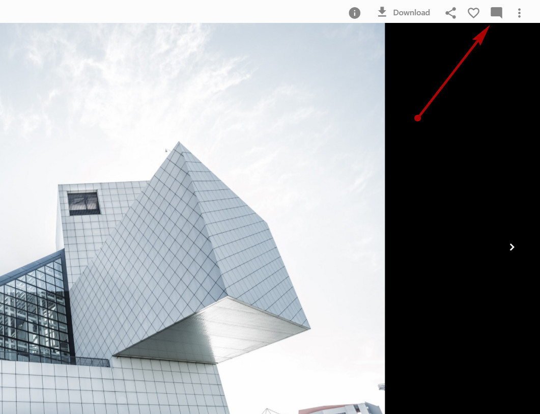 To add a comment to the image, open the image in full screen and click the