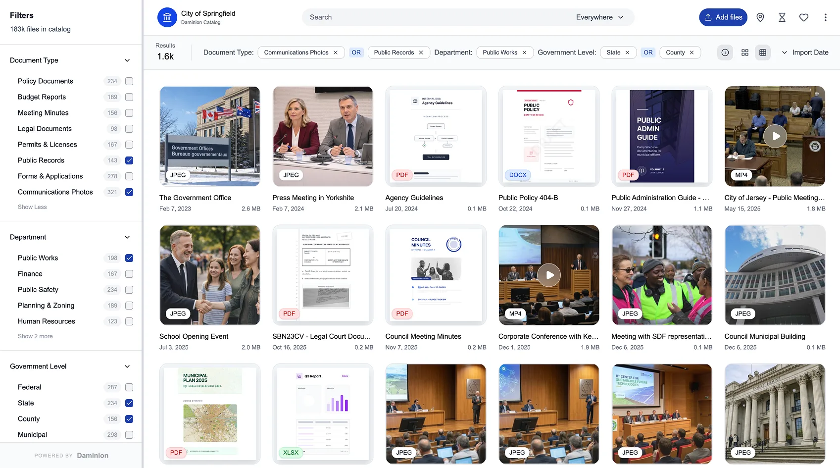 Government departments and agencies generate large volumes of photos and media from inspections, public works, infrastructure projects, events, and community programs. A DAM brings all this content into one organized, searchable library instead of scattered network drives, emails, and personal folders.