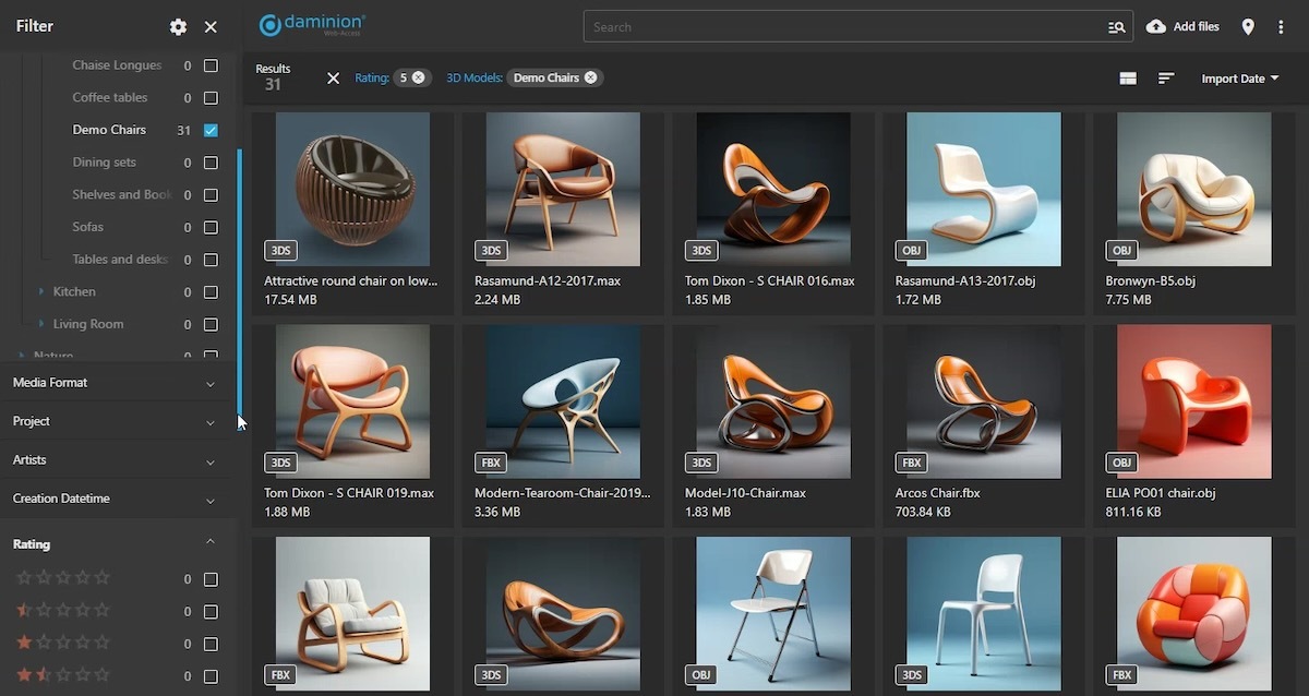 Answer: Daminion DAM supports a wide range of file formats, including images, videos, documents, audio files, and more. It can generate visual thumbnails for over 100 media formats, making it easy to organize and find assets.
